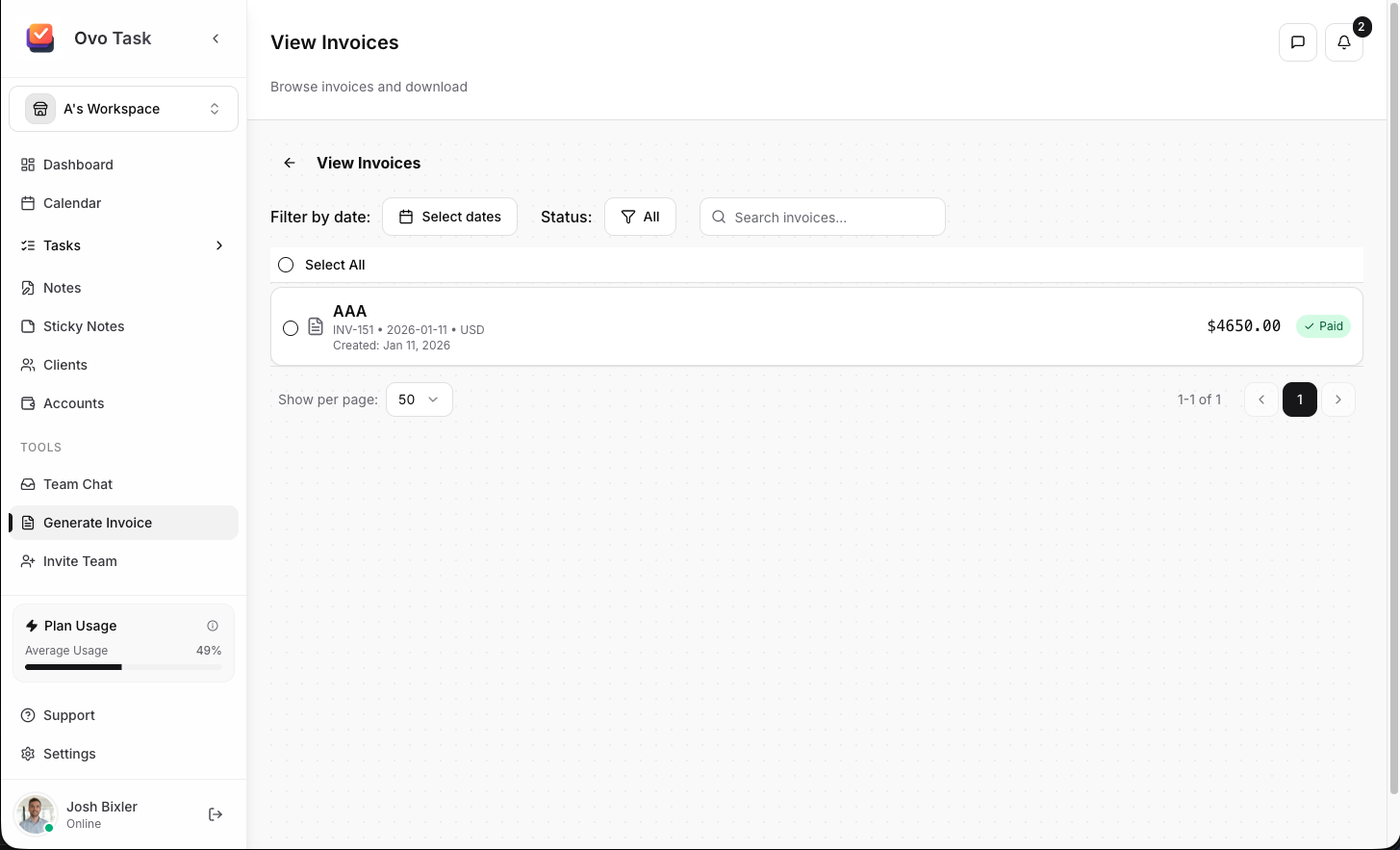 Generate and email professional invoices directly from OvoTask.